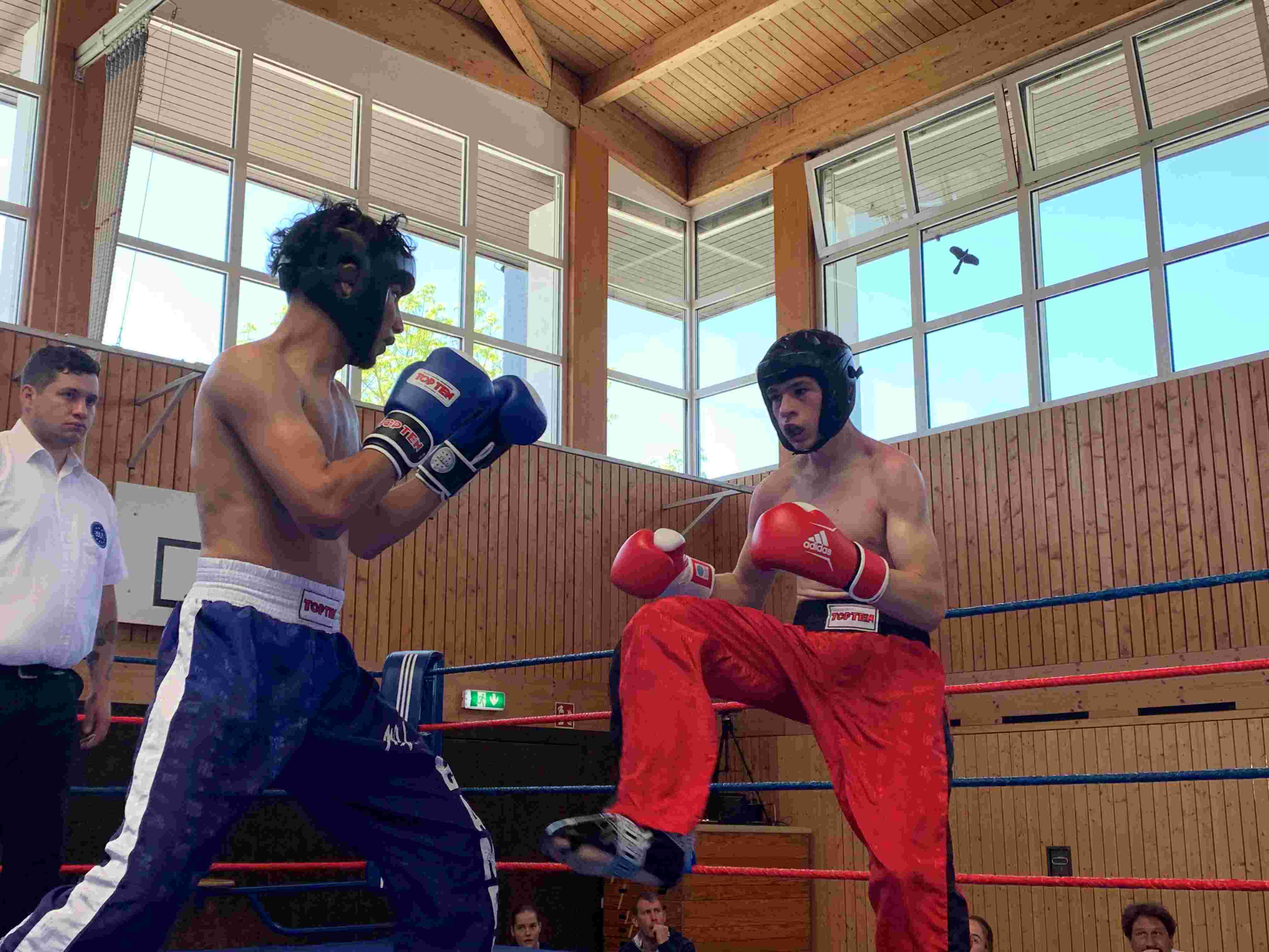 Die Erdinger waren in Obertraubling mit 12 Aktiven vor Ort. Bei über 400 gemeldeten Teilnehmern hatten die KBV-Trainer und Betreuer alle Hände voll zu tun. In der LK Nachwuchsklasse bestritt Felix Abraham (ED -63 Kg) seinen ersten Kampf gegen Milan Krajcovic aus Obertraubling. Felix kämpfte gut, aber etwas zu verhalten. Der Sieg ging an Milan. Ekren Kaya besiegte in der LK Klasse -84 Kg Anton Fast (Augsburg), musste sich dann aber gegen Marty Jindra (Marktredwitz) geschlagen geben. Lukas Krumbiegel (ED Junior. VK -63,5 Kg) musste im Halbfinale mit Tamin Ghafari aus Bamberg in den Ring. Lukas war bis 60 Kg gemeldet, aber da gab es keinen Gegner. Der Erdinger wehrte sich nach Leibeskräften, konnte aber den deutlichen Gewichts und Größenunterschied nicht wettmachen. Klarer Punktesieg für Ghafari. In der selben Klasse aber hatte auch Gjergi Maxhera (ED) ein Wörtchen mitzureden. Er kam mit einem Sieg über Taylor Krug (Bushido Oberpfalz) ins Finale und stellte sich nun dem Krumbiegel Bezwinger. Die beiden 16- jährigen schenkten sich nichts! In einem harten und emotional geführten Kampf hatte Maxhera am Ende die Nase vorne. In der Klasse LK Junioren -79 Kg gab es nur einen Finalkampf. Marc Zahira (ED) und Christian Raileanu aus München fighteten beherzt. Nach einem furiosen Endspurt konnte Marc den Sieg für Erding holen. In der Schwergewichtsklasse LK -94 Kg musste Samuele Panizza (ED) mit Noah Forster (Marktredwitz) auf die Matte. Noahs Größe und Reichweite waren enorm. Samuele hielt mit vollem Einsatz das Gefecht bis Mitte der Kampfdistanz offen, musste sich aber dann am Ende mit 2:1 Kampfrichterstimmen geschlagen geben. Um Kampferfahrung zu sammeln startete Lena Klupp gleich in zwei Gewichtsklassen LK -65 Kg und -70 Kg). Nach zögerlichem Start fand sie schnell ihren Stil und steigerte sich von Kampf zu Kampf. In beiden Klassen belegte sie die ersten Plätze und siegte dabei über Theresa Reitbauer (Passau), Sina Ruckriegel (Bayreuth) und Aischa Dautovic (Erlangen). Nach ihrem dritten Platz bei den German Open in Hamburg bestätigte Constanze Ertel ihre derzeitige Form. In der Bayerischen Eliteklasse besiegte sie nach der Vorrunde Sarah Niemann und Anja Wolf (beide Bamberg) klar nach Punkten und wurde verdient Bayerische Meisterin. Lucie Ulses tat es ihr in der Jug. Klasse -50 Kg gleich und sicherte sich nach Siegen über Emma Militaru (München) und Vereinskollegin Katharina Kraus den Titel. Anna Hofmann, die eine Klasse höher (+70 Kg) wie gewohnt starten musste kam im Halbfinale mit der Bambergerin Aylin Dix einfach nicht zurecht. Der Gewichtsunterschied war zu groß! Trotz vollem Einsatz musste Anna den Sieg abgeben und sich mit Platz drei begnügen. Jung-Champion Hannes Hörl wurde wieder einmal seiner Favoritenrolle gerecht und ließ in seiner Gewichtsklasse Jug. LK -47 Kg nichts anbrennen. Er wies Noah Reutz und Kaan Yaziki (beide Waldkraiburg) klar in die Schranken. Der Bayerische Titel wurde von ihm schon fast erwartet. Besonders freute sich Hannes über die Nachricht, dass er vom Bayerischen Verband als Leichtkontaktsportler des Jahres 2024 gewählt wurde. Der KBV bedankt sich an dieser Stelle bei allen Aktiven und Helfern für das mitwirken bei dieser Großveranstaltung. Danke an: Peter Lutzny (Trainer), Alexander Häußer (Trainer), Doris Grünbacher (Betreuer), Julia Purmann (Betreuer), Jochen Hörl (Kampfrichter), Norbert Jahn (Kampfrichter). Foto: Gjergi Maxhera (ED, rote Hose) Sieger Nachwuchsturnier Vollkontakt Junioren -63,5 Kg