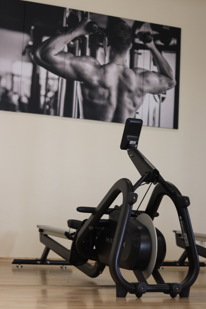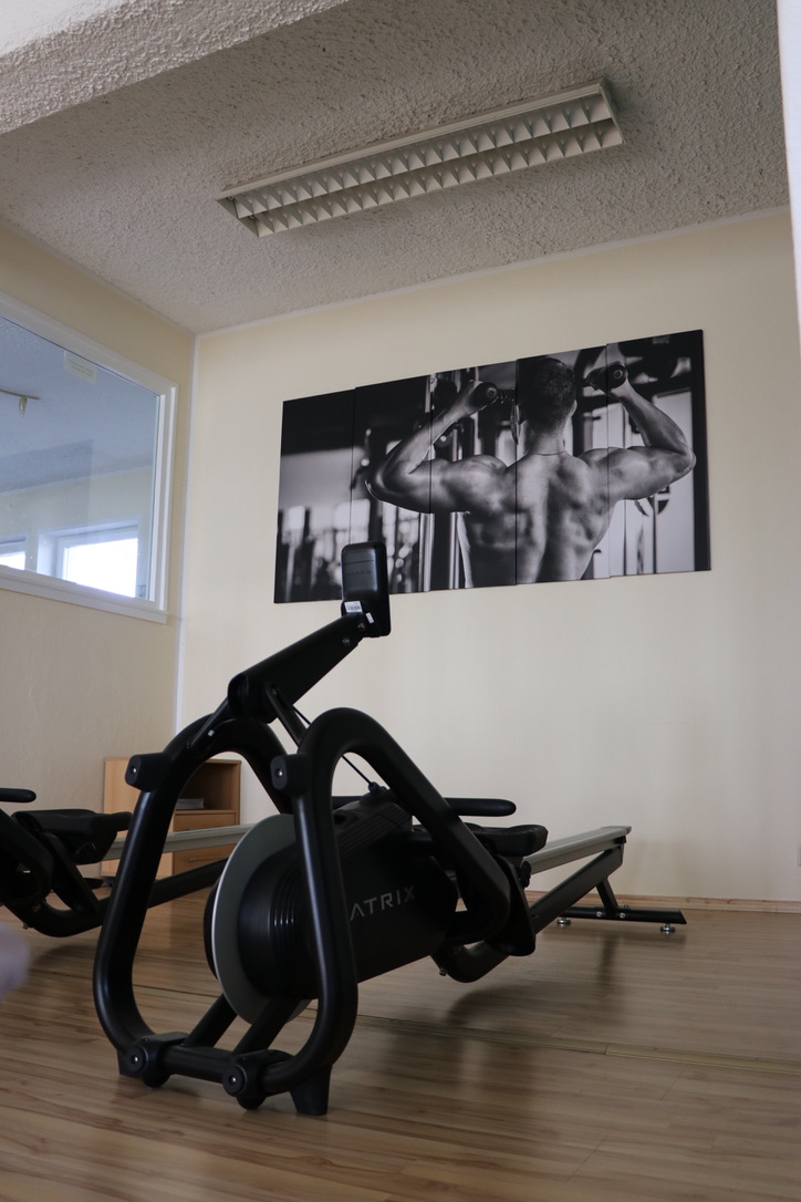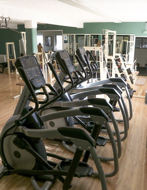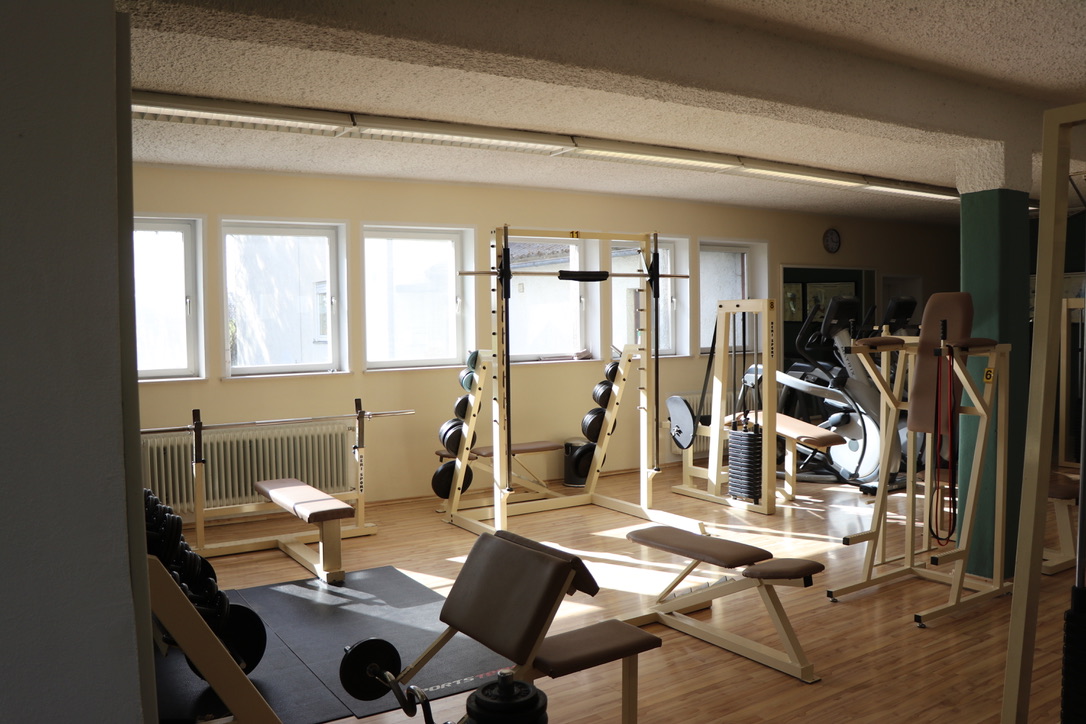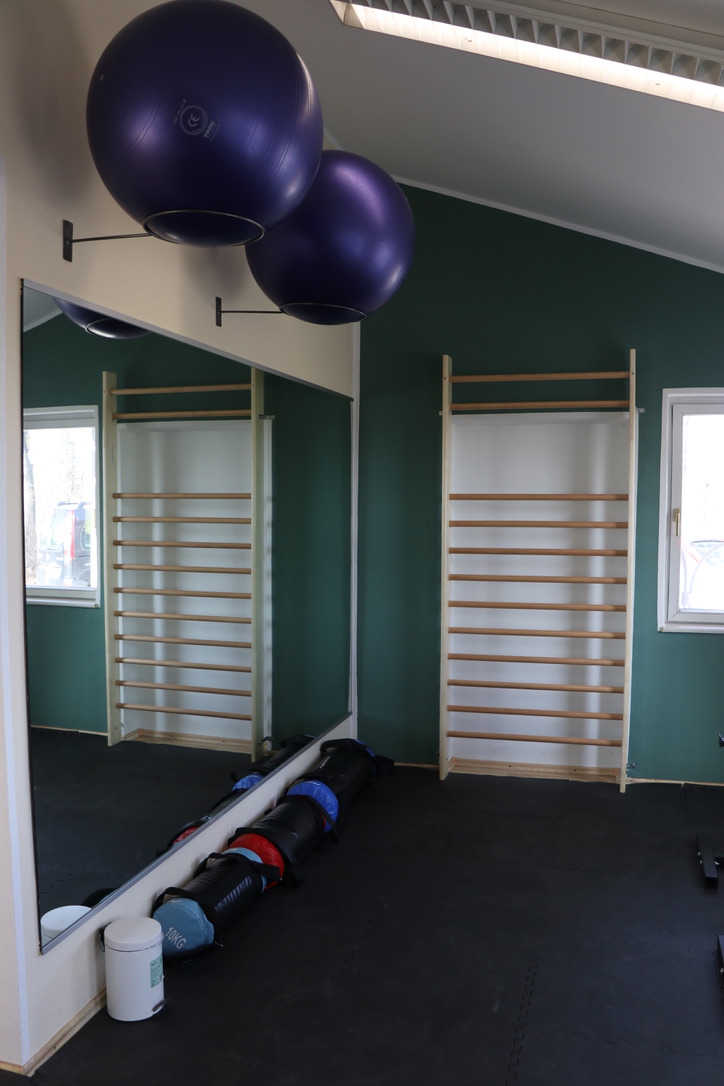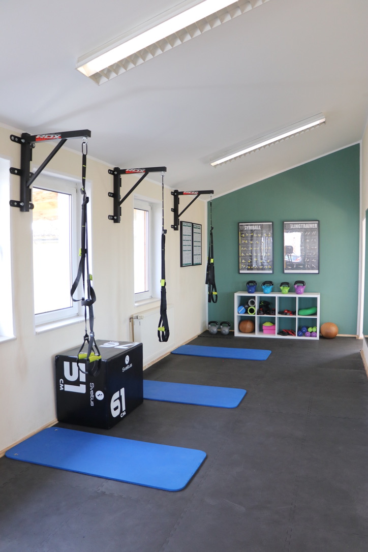Spiegelwand, Slingtrainer, Pezzibälle, Sprossenwand, Kettlebells usw.